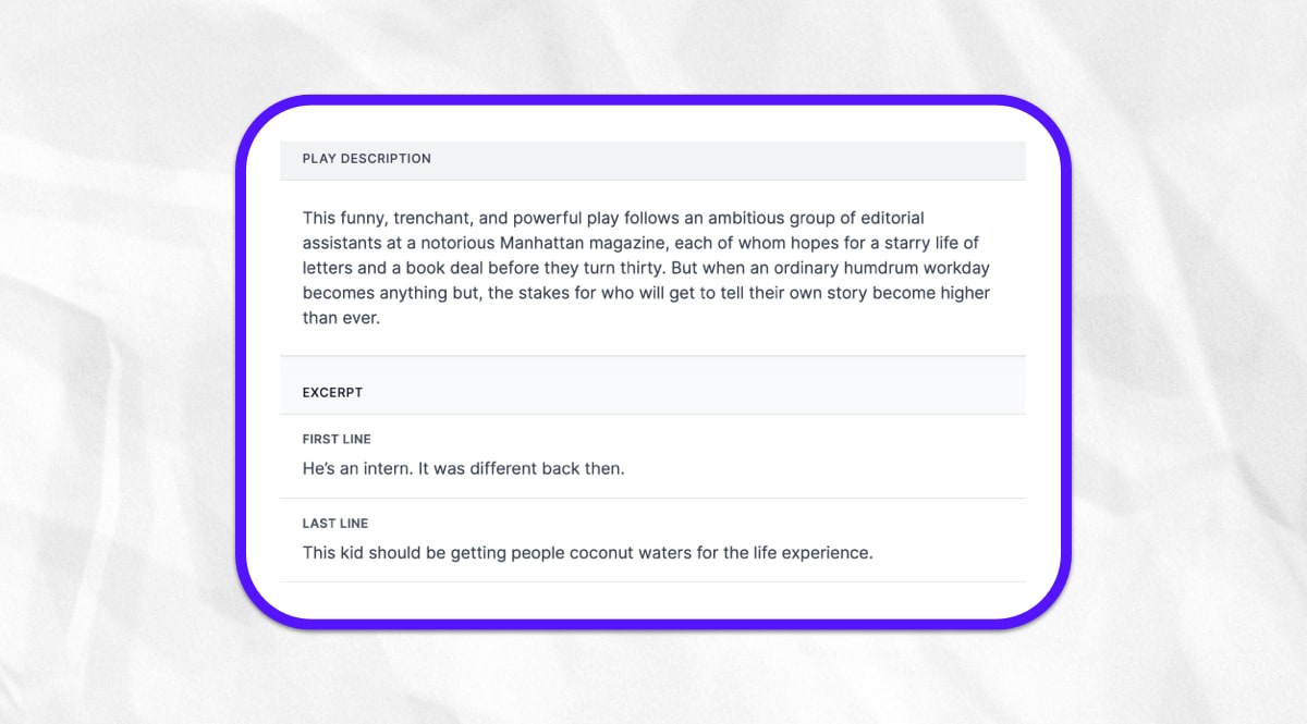 Instead of reading through dozens of plays trying to find a single usable monologue, you walk into the bookstore or library with a curated shortlist of plays (from the ones you bookmarked) that already contain audition-ready material.