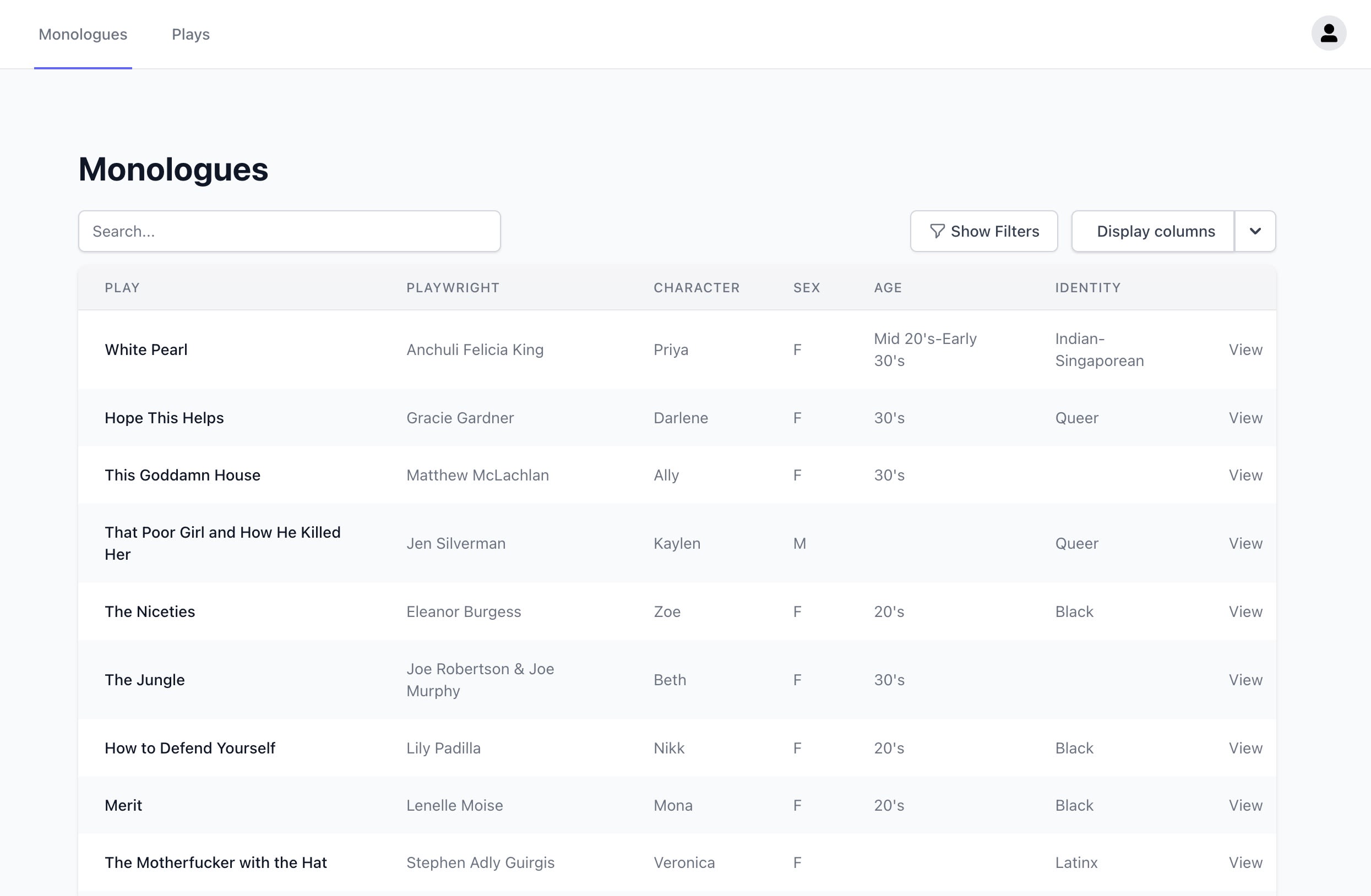 “I just really can't help but tell you how precious what you have built is with the Monologue Database, allowing students or young actors to really find what they're looking for.”